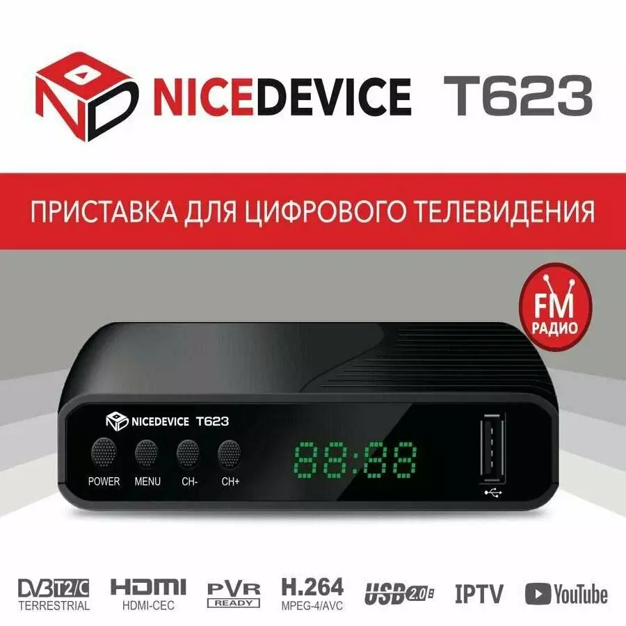 - Цифровая ТВ-приставка Nice Device T623 – это компактное устройство, предназначенное для приема и декодирования цифровых сигналов стандартов DVB-T, DVB-T2 и DVB-C.